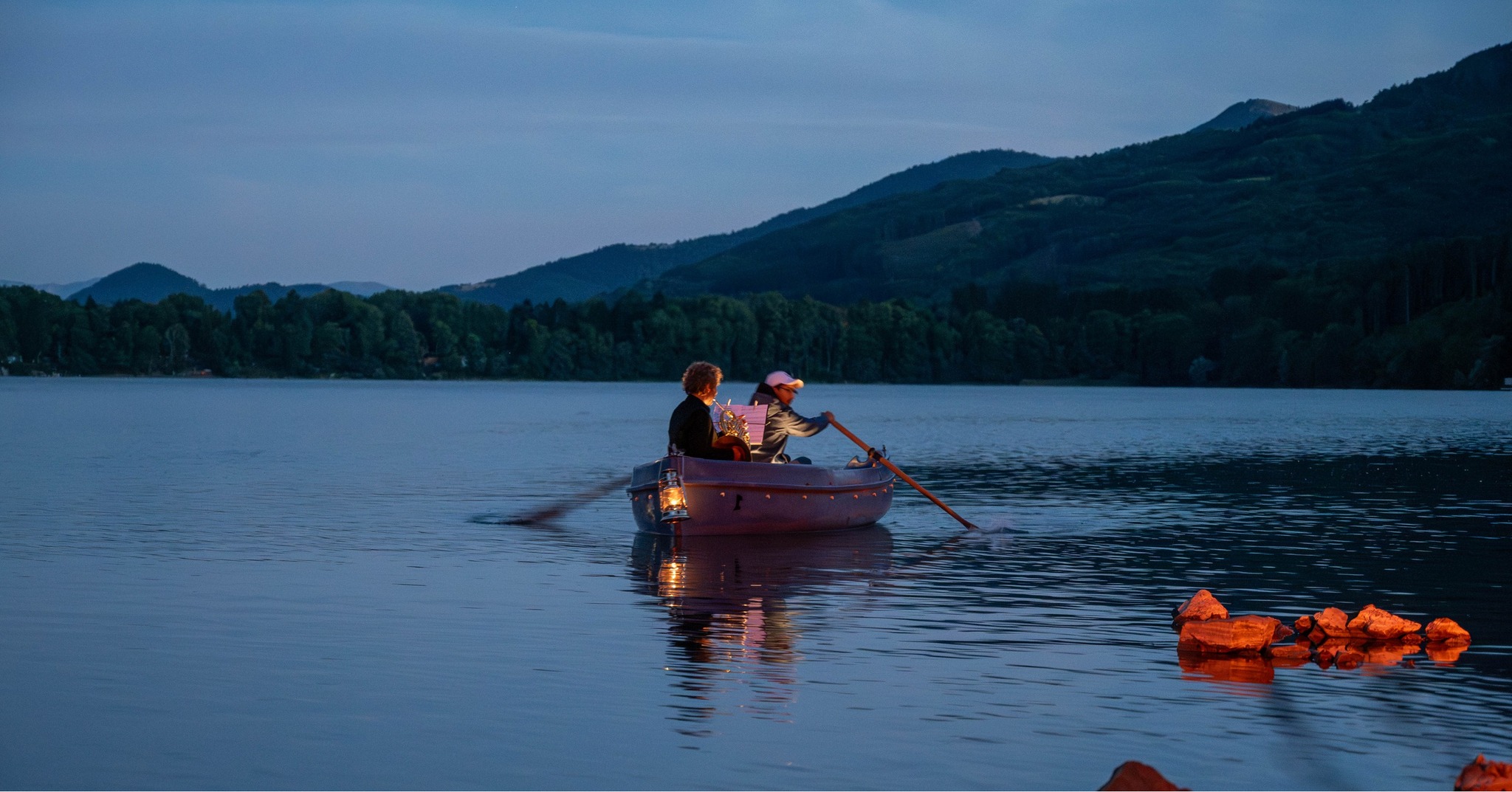 Jouer dehors, c’est une idée simple, mais radicale si les artistes souhaitent vraiment se connecter au lieu où ils jouent : car un lac, une forêt ou une montagne, ne sont pas des décors, ou même des paysages, mais des lieux vivants qui portent certes les traces des usages nombreux des humains mais qui sont également traversés par des espèces aux vies et aux rythmes multiples, et au-delà, portent la trace d’une histoire qui dépasse l’échelle humaine.