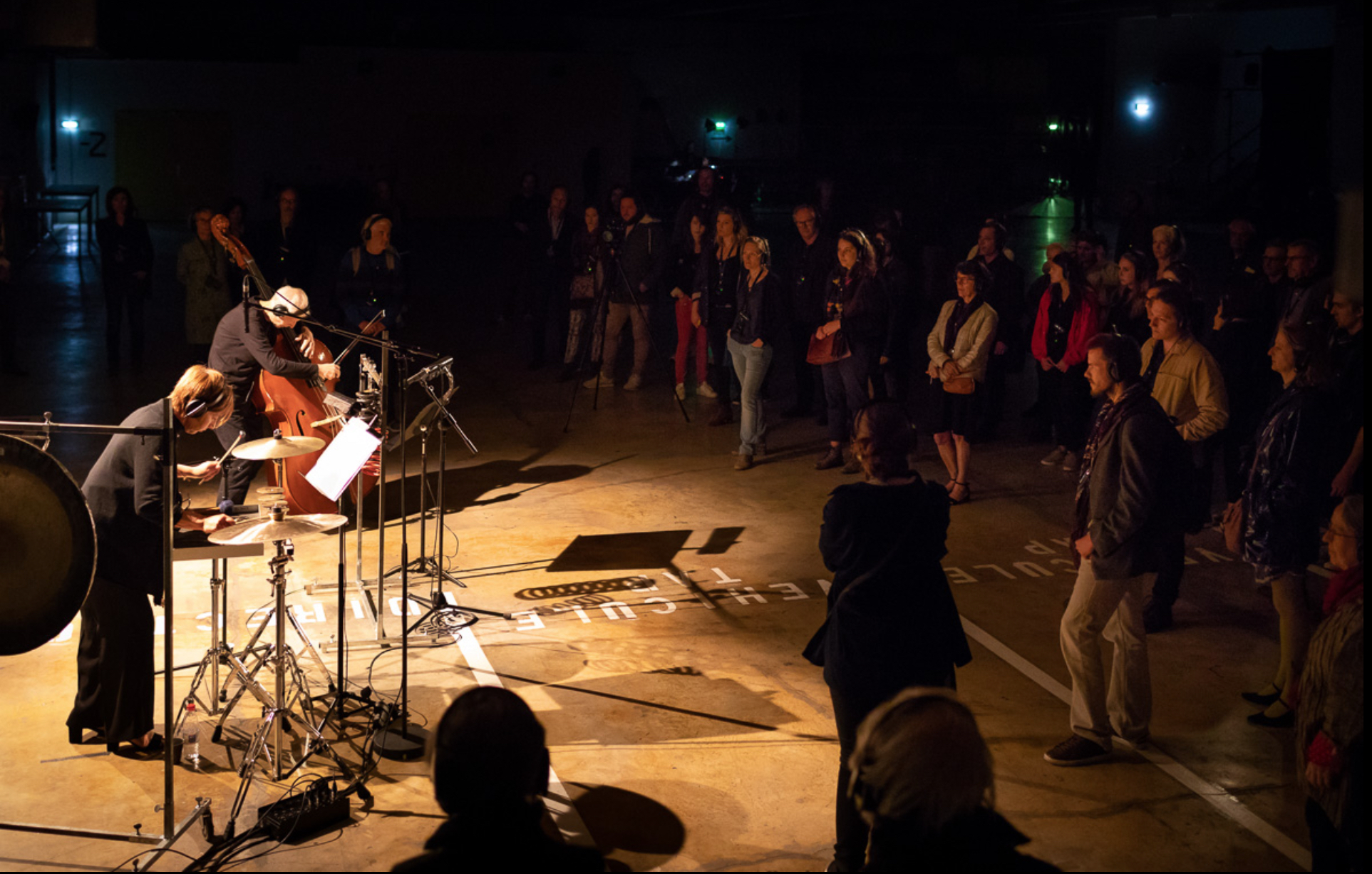 contrebasse, percussion, électronique sous casques
